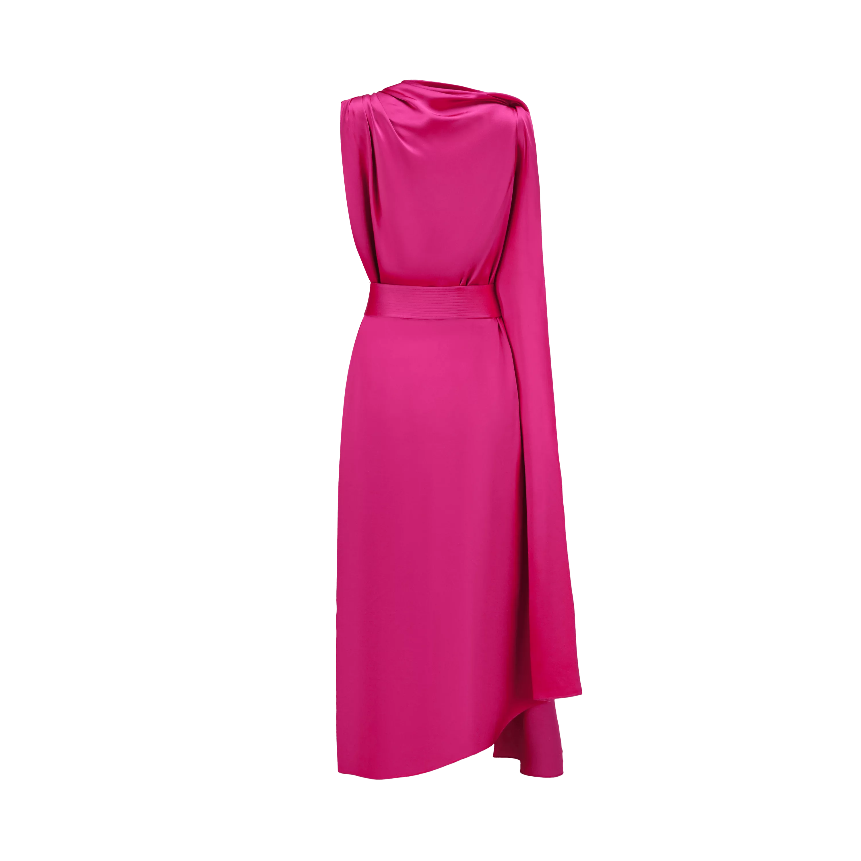 玫红色垂褶缎面连衣裙