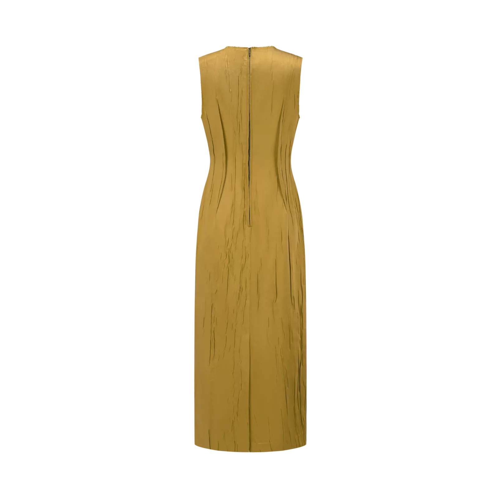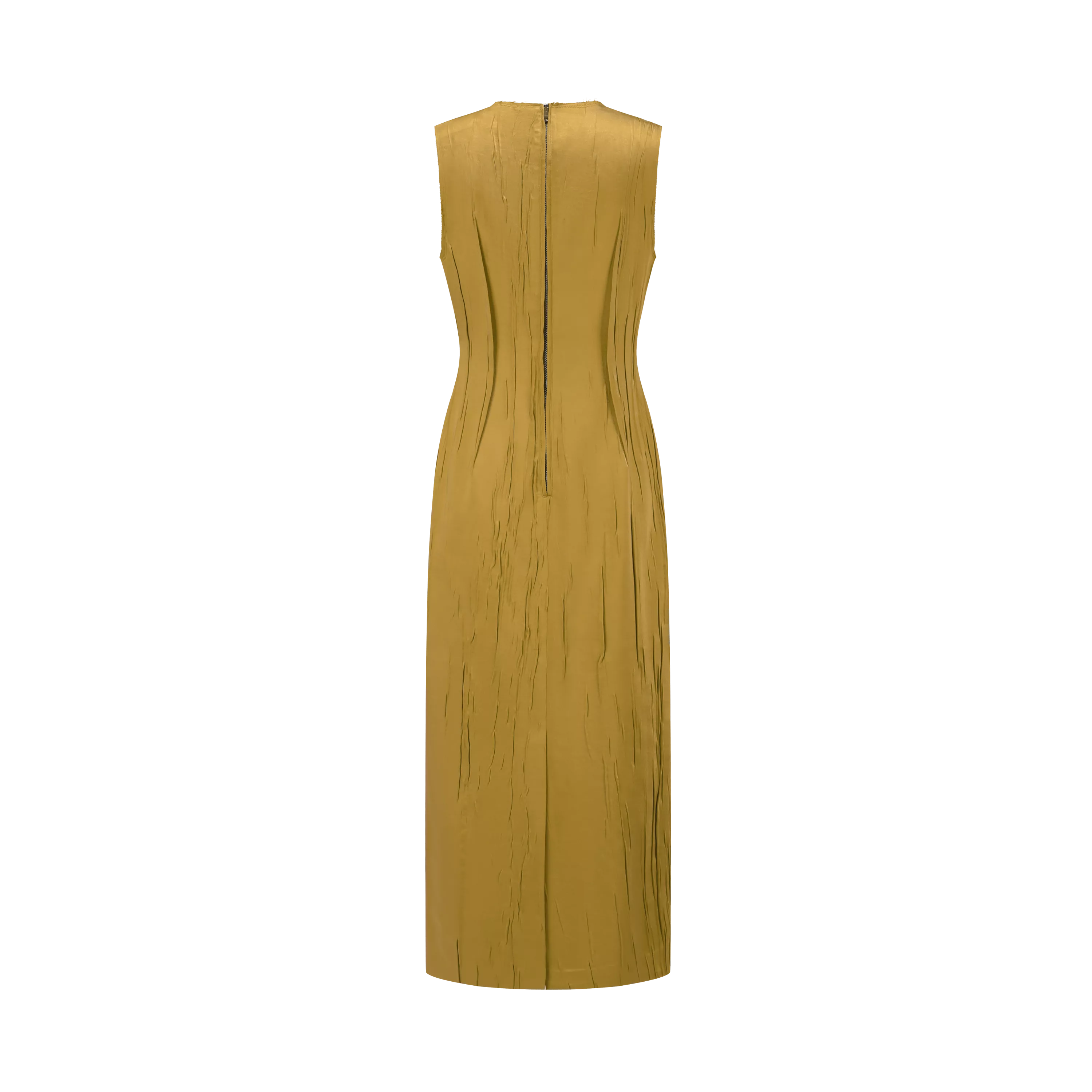 橄榄绿缎面纹理直筒折纸花连衣裙