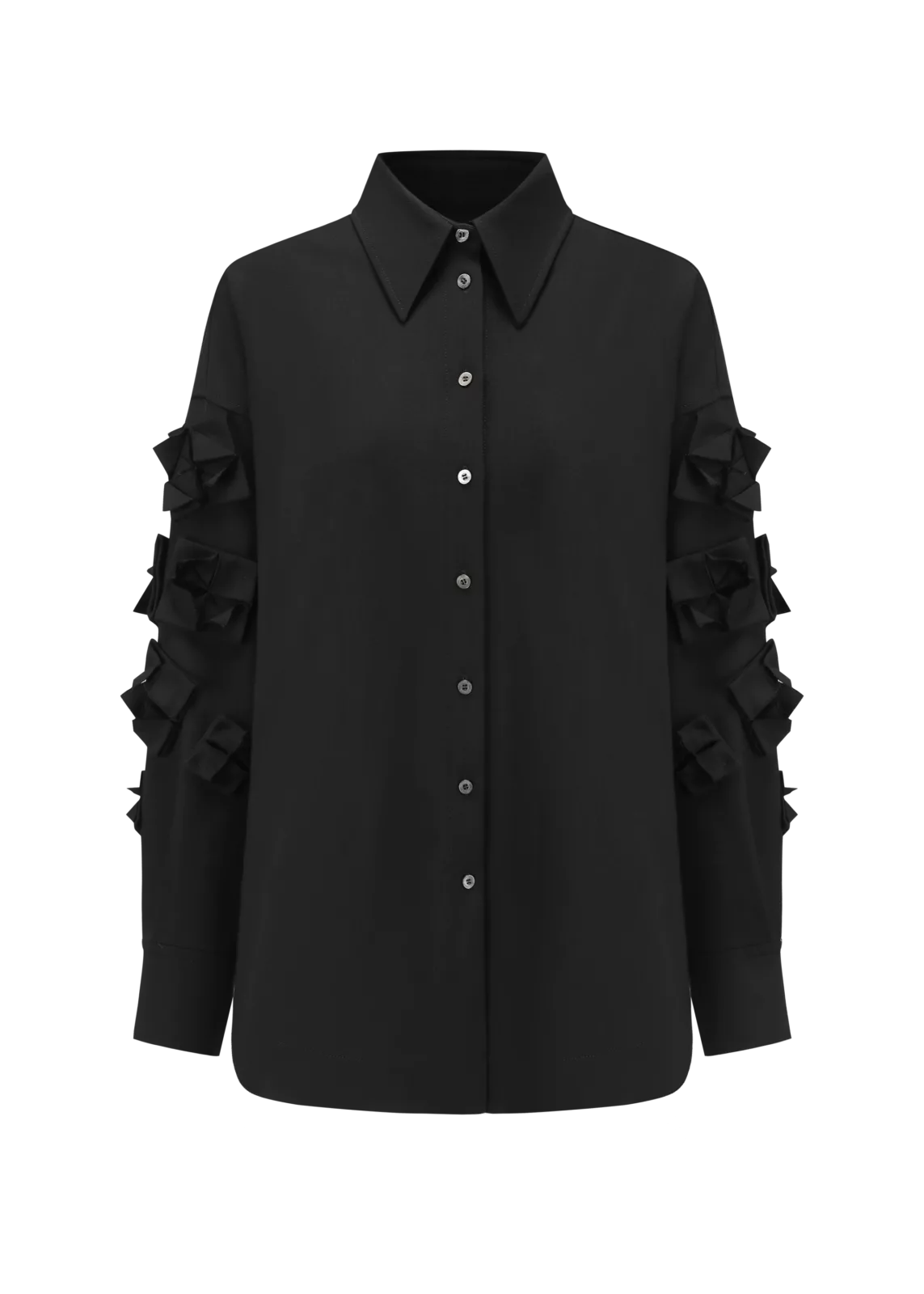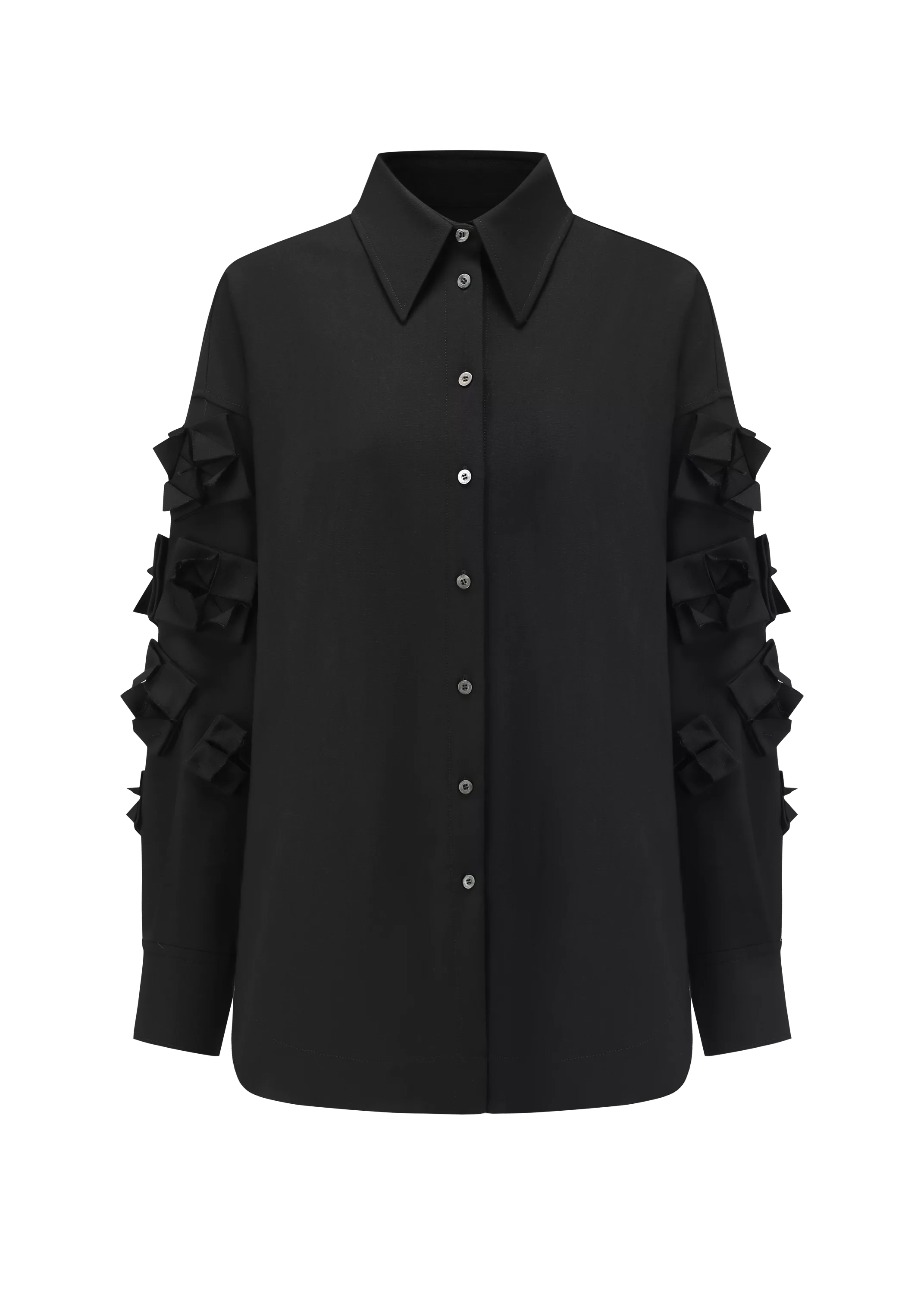 黑色折纸袖羊毛衬衫